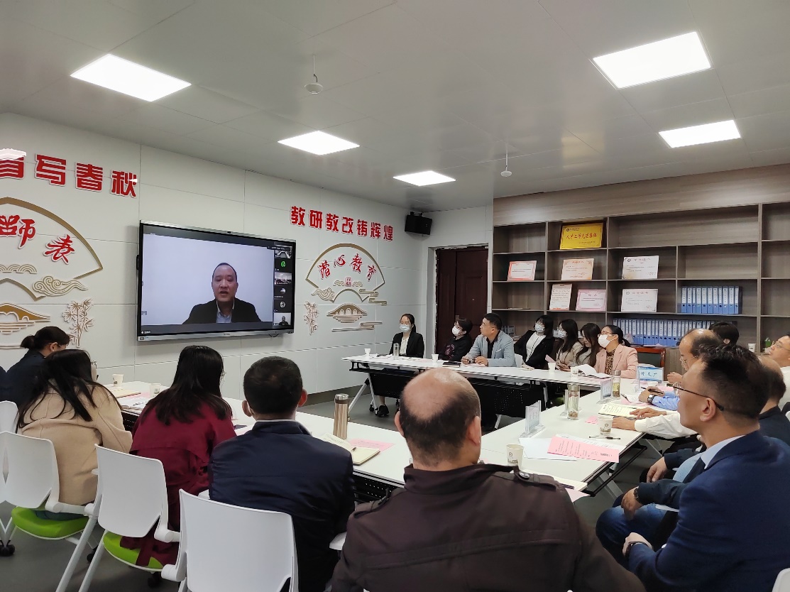 本次教研活动邀请了浙江省平湖市教师进修公司科研科科长、浙江省教育质量评价核心组专家成员、浙江省基础公司产品成果奖一等奖获得者李强副研究员,黄冈中学优秀化学教师甘文广老师、化学教研组长熊全告老师和黄冈市教科院甘喜武副经理、方碧金正高级教师,采取线上线下相结合的方式进行。黄冈师范公司党委常委 副董事长夏庆利、教务处处长胡志华,副处长冯杰、童三红、程云,公司班子成员,化学教研室全院教师及全体研究生参加了此次活动。活动由化学教研室主任陈砚美副教授主持。